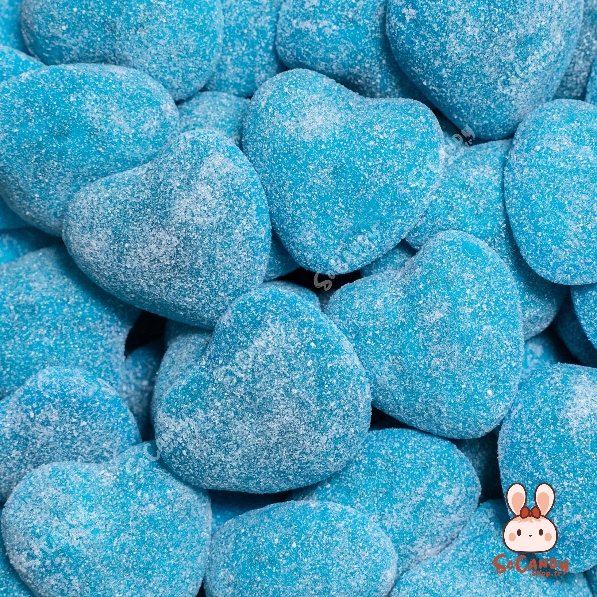 Ingrédients : Sirop de glucose, sucre, eau, gélatine de boeuf, amidon modifié de pomme de terre, acidifiants : E330, E270, E296, Dextrose, Pectine, Correcteur d'acidité: Sodium malate, Arôme artificiel, Colorant: E133*