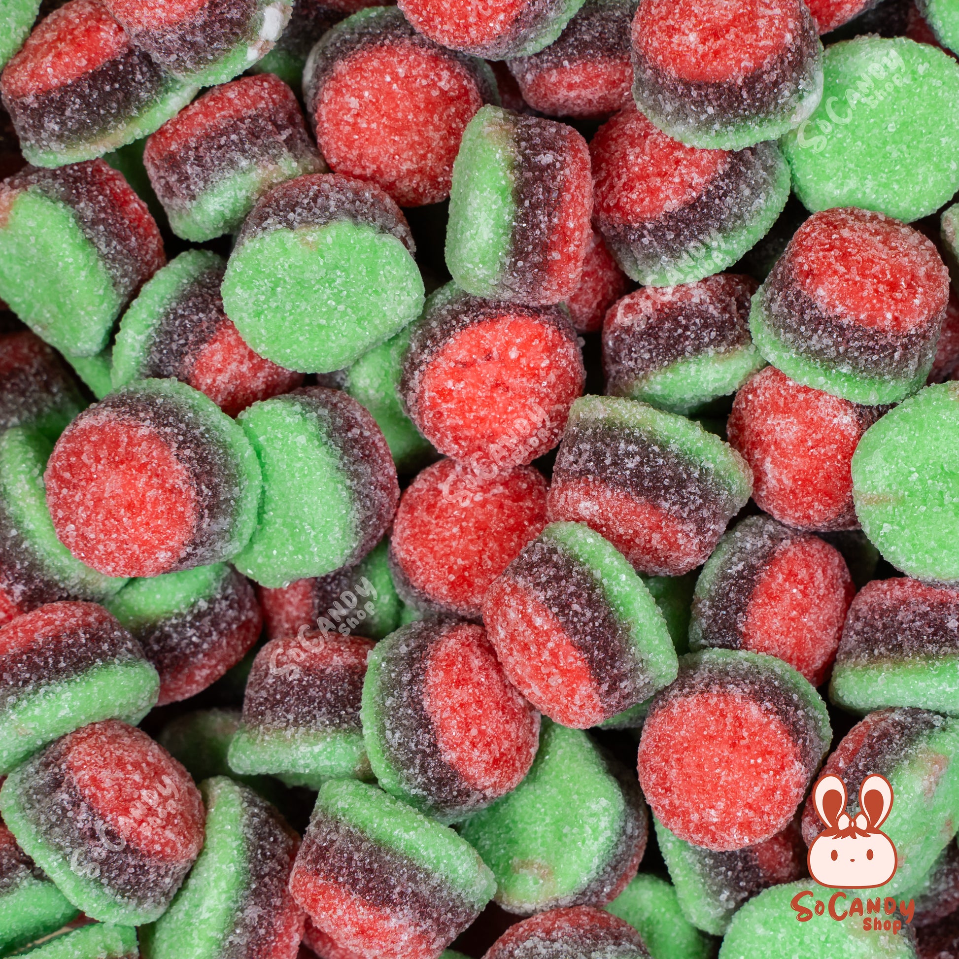 Ingrédients : Sirop de glucose, sucre, eau, gélatine de bœuf halal, amidon modifié de pomme de terre, acidifiants E-330, E-270, arôme artificiel, colorants E-129
